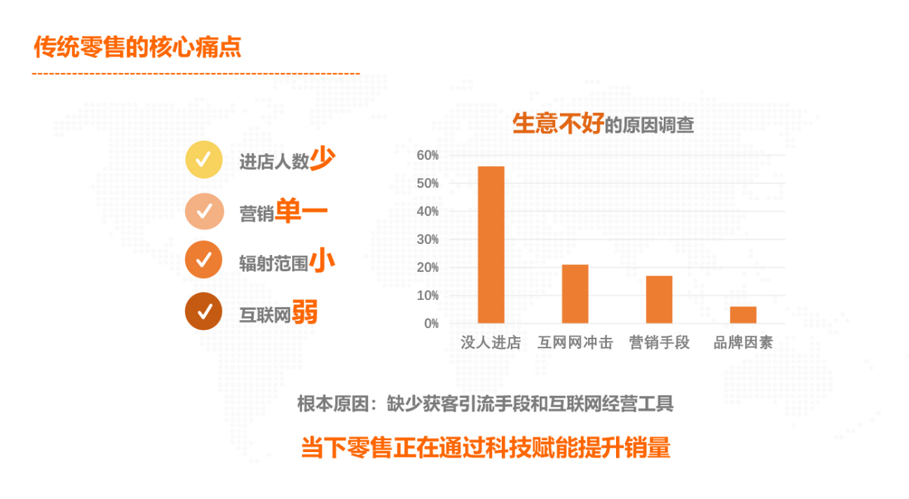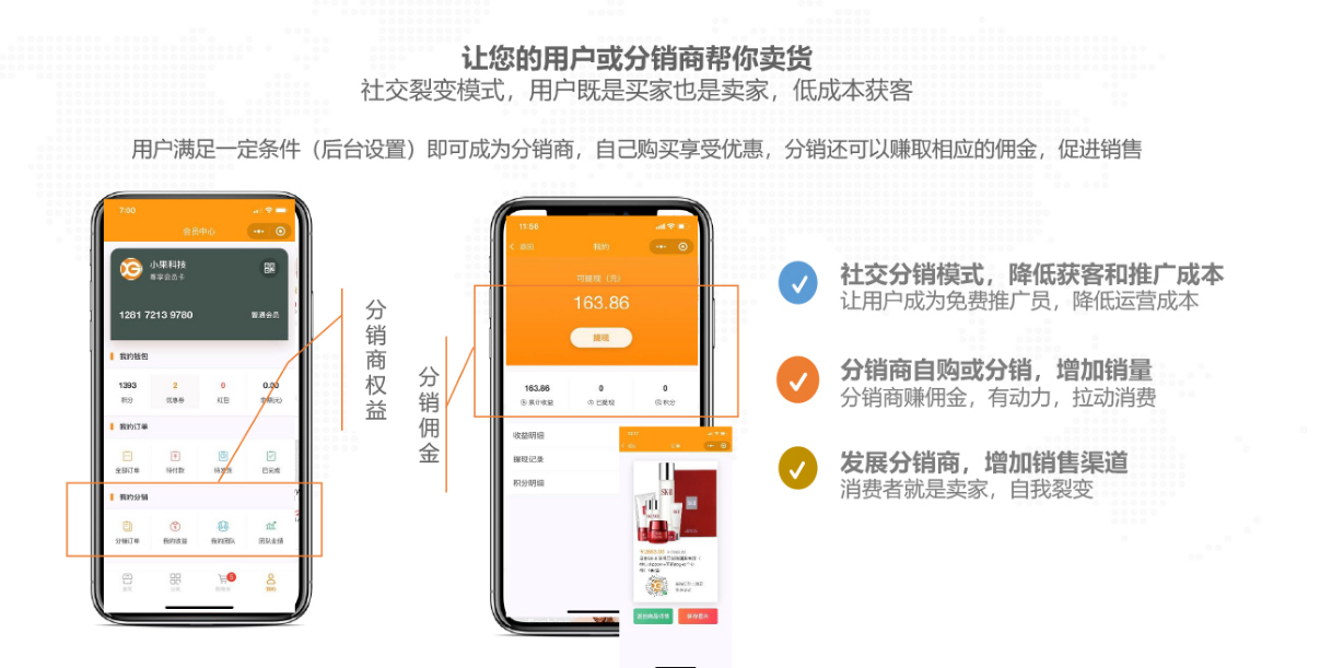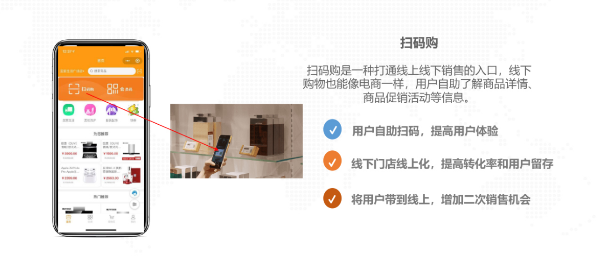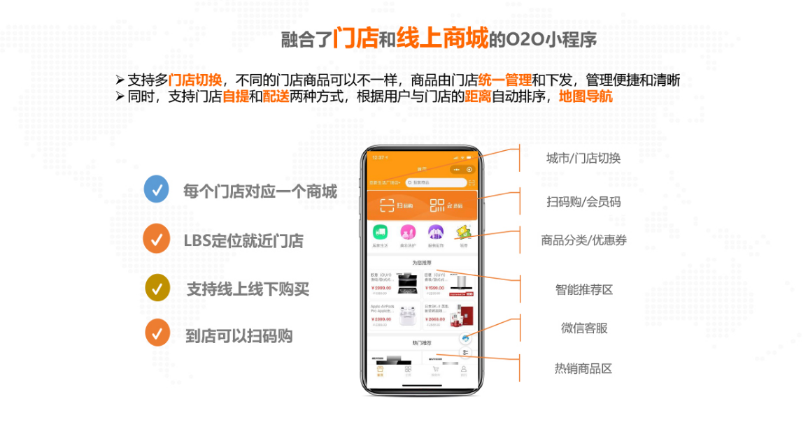 智慧零售可实现门店商品线上销售 , 门店网店库存同步,线上线下会员权益共享,储值互通,打通门店网店营销,帮助商家降低获客成本,促进复购活跃,快速提高门店业绩。